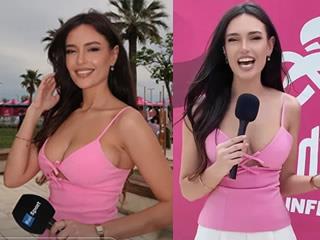 The glamorous sports presenter, dubbed the "Albanian Laura Woods", lit up the screen from her homeland for this week's Champions League coverage.