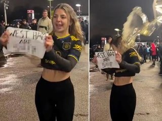 A Manchester United supporter, who is also an adult content creator, was left drenched in beer after she mocked West Ham fans outside their own stadium...Full Story »