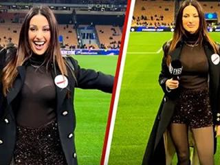 The bombshell host was covering the Milan derby at San Siro, in which AC Milan ran out 1-0 winners thanks to a goal from ex-Chelsea star Christian Pulisic.