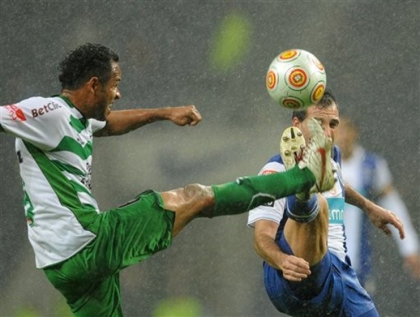 FC Porto's Mariano Gonzalez, right, from Argentina challenges Naval's Cleber Oliveira from Brazil in a Portuguese League soccer match at Porto's Dragao Stadium in Porto, Portugal, Sunday, Feb. 7, 2010. Porto won 3-0.