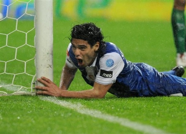 FC Porto's Radamel Falcao from Colombia celebrates on the pitch after scoring his team second goal against Naval in a Portuguese League soccer match at Porto's Dragao Stadium in Porto, Portugal, Sunday, Feb. 7, 2010. Falcao scored once in Porto's 3-0 victory.