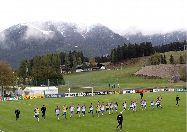 Players warm up during the Dutch national football team's first practice at their training camp in Tyrolian village in Seefeld on May 20, 2010, prior to the FIFA World cup 2010 in South Africa.