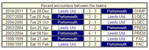 FootyMad attempt to assist you with their form guide as Portsmouth take on Leeds United in a Championship match on Saturday, 22nd January 2011 at 15:00.