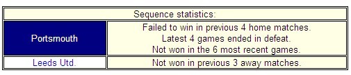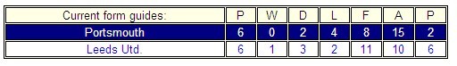 Portsmouth find themselves struggling down in 18th position in the league having picked up 30 points from their 25 matches. Leeds Utd.'s total of 44 points from their 27 games sees them sitting in the playoff places in Npower Championship.