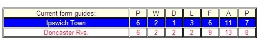 FootyMad attempt to assist you with their form guide as Ipswich Town take on Doncaster Rovers in a Championship match on Saturday, 22nd January 2011 at 15:00.