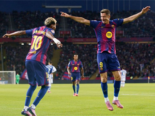 - Barcelona striker Lewandowski pushed about S...