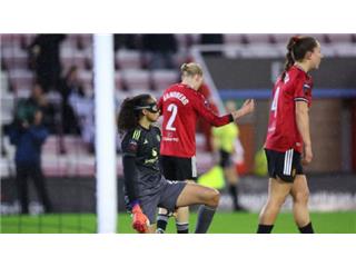 Man United goalkeeper Phallon Tullis-Joyce reacts after conceding the third goal to Spurs. Molly Darlington - WSL/WSL Football via Getty Images By the 6...