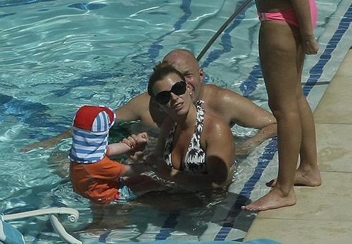 He covered up his pale skin in a blue T-shirt and shorts combo with dark sunglasses.