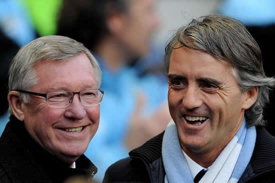 ALL SMILES ... Fergie and Manchester City boss Roberto Mancini