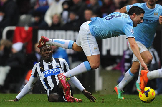 Nasri is fouled by Yanga-Mbiwa in City's 2-0 win at St. James' Park