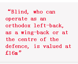 Blind, who can operate as an orthodox left-back, as a wing-back or at the centre of the defence, is valued at £16m.