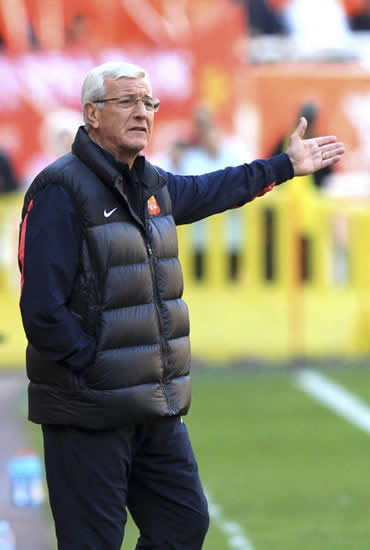 Italian Marcello Lippi, coach of Guangzhou Evergrande watches his team play against Shandong Luneng in Jinan in east China's Shandong province Sunday, Nov. 2, 2014