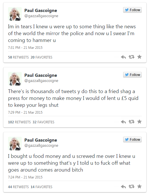Poor Gazza has a Twitter meltdown claiming a woman screwed him over