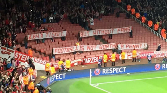 The banners from the Bayern Munich supporters in the away end at Arsenal's Emirates Stadium certainly made their point: "£64 a ticket, but without fans football is not worth a penny!"