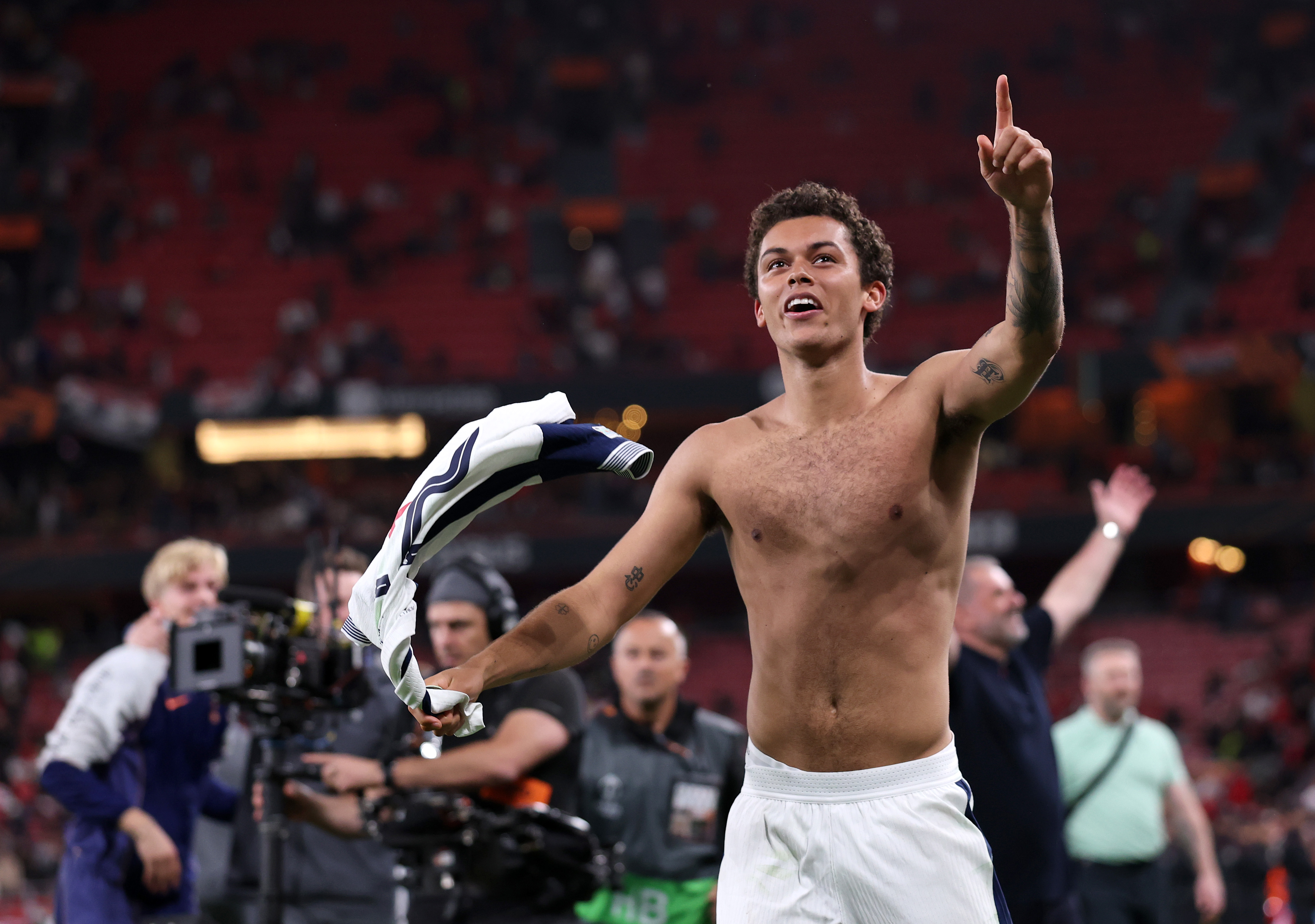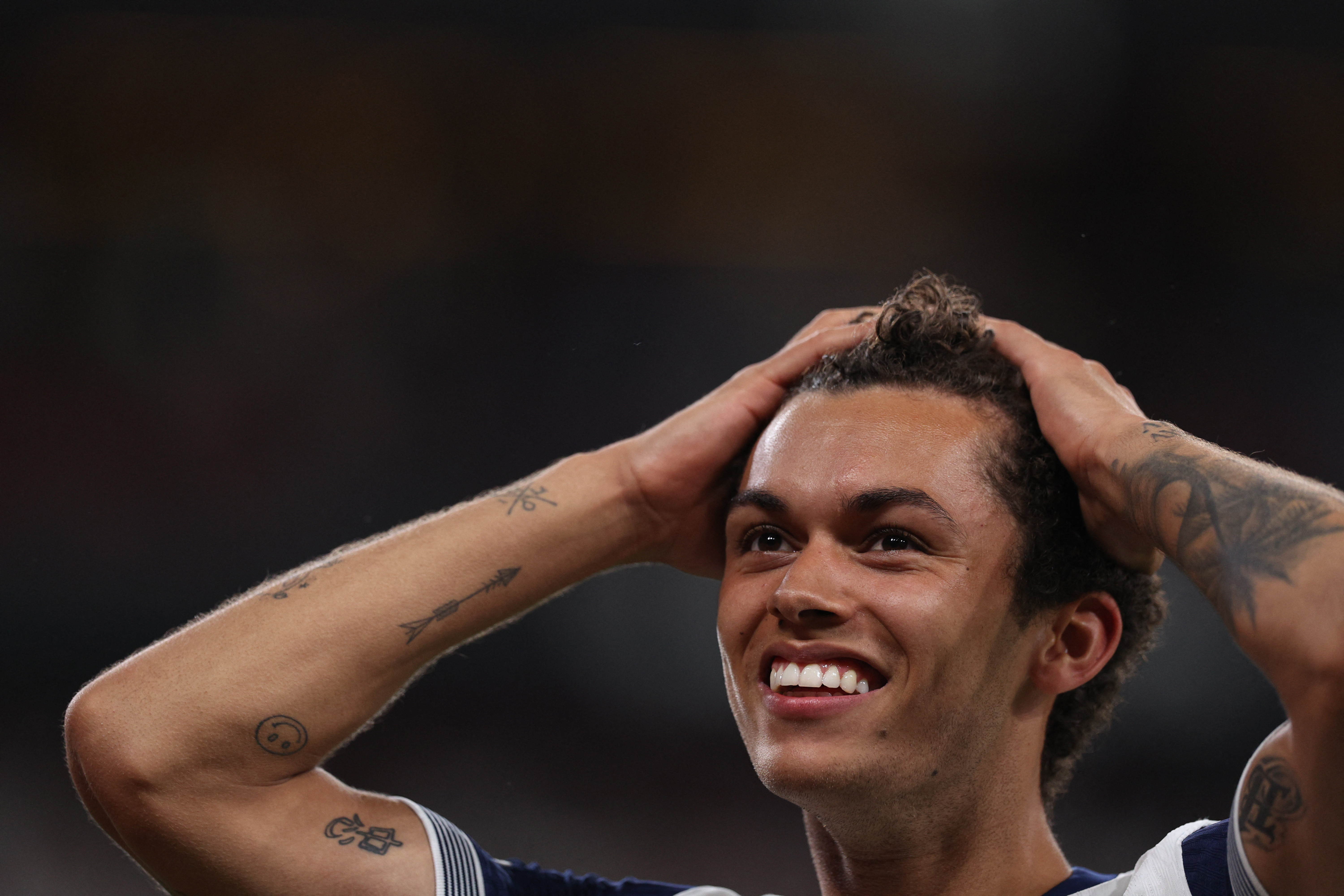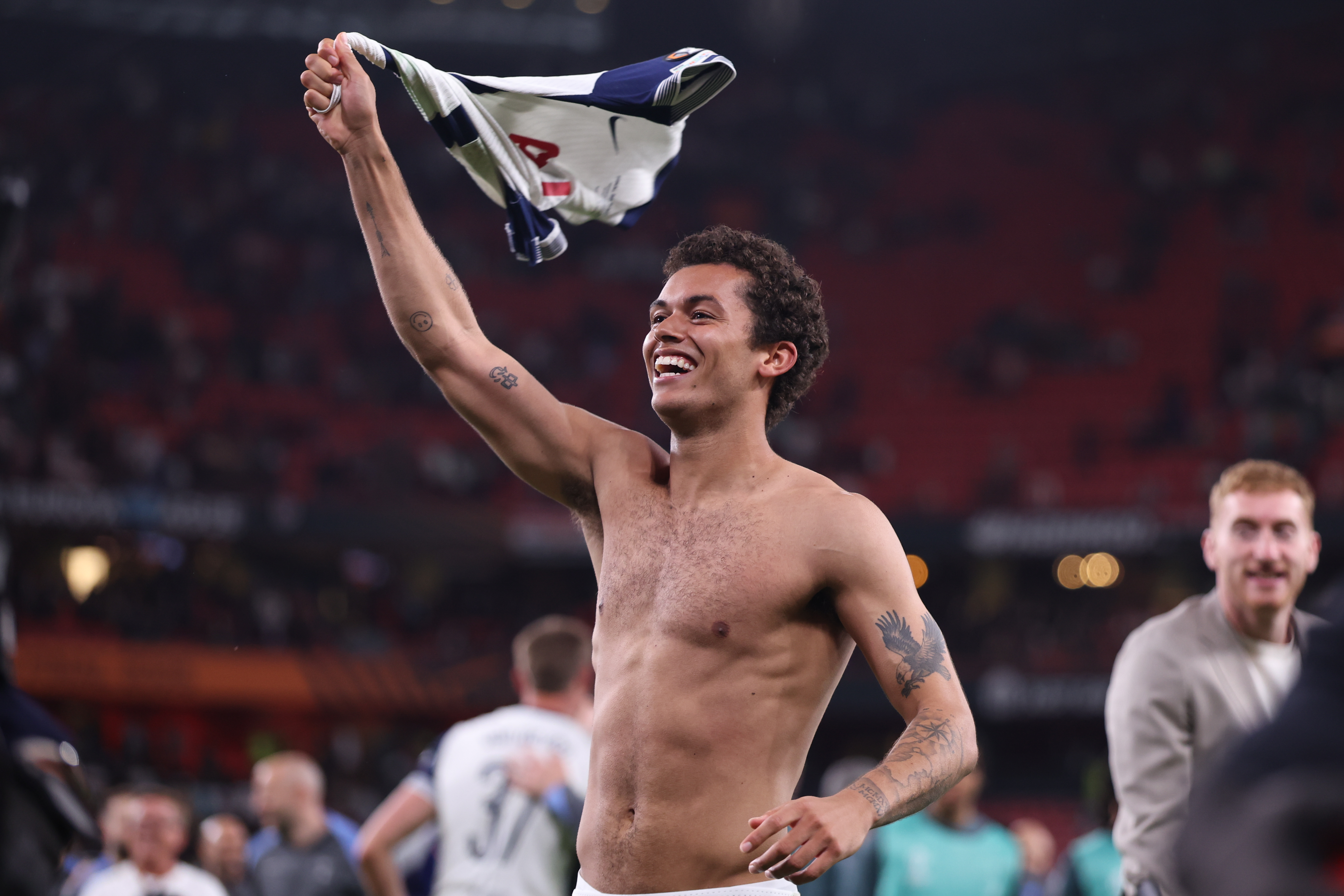 Brennan Johnson seems to be pondering on what he has just done for Tottenham in Spain.