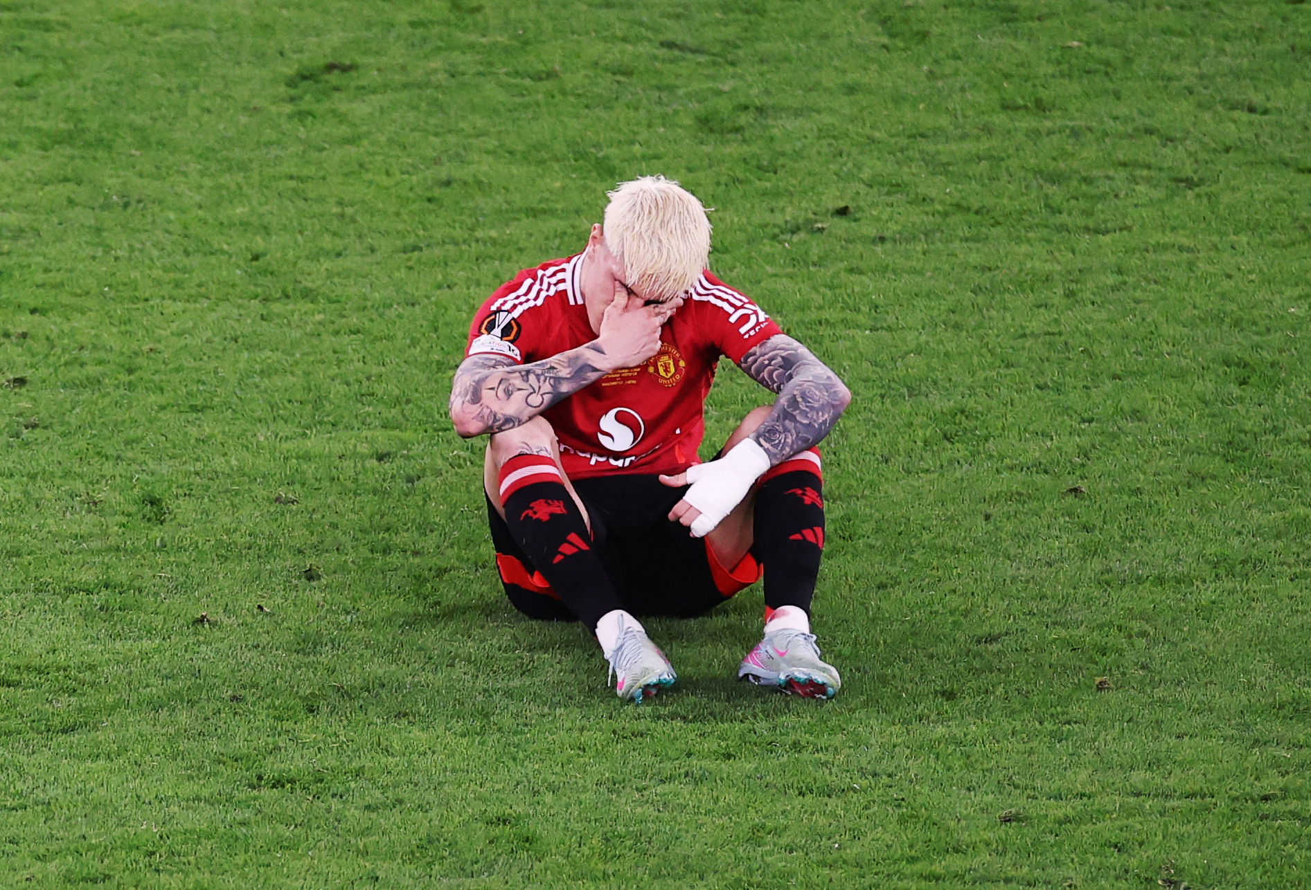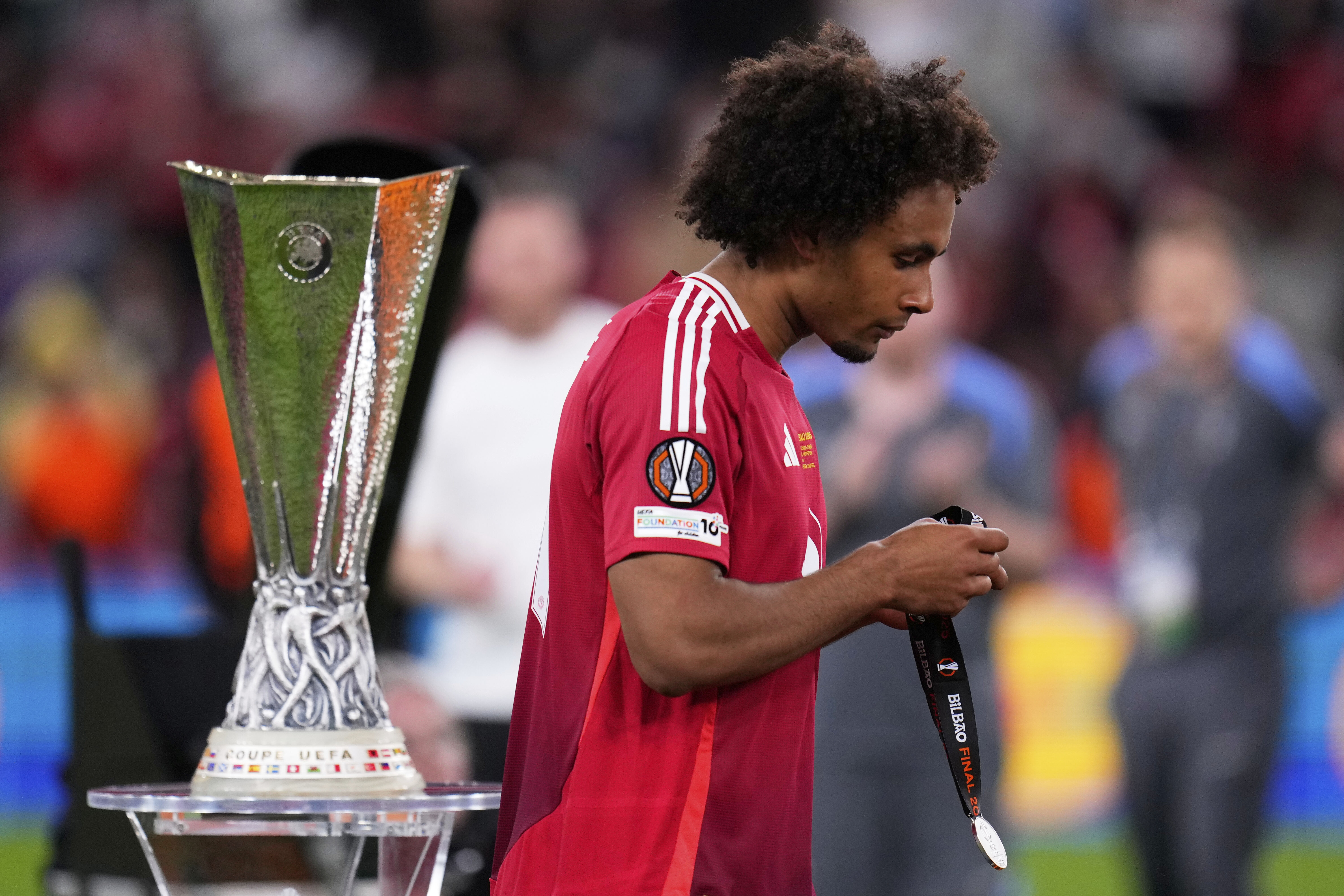 The looks of dejection are there for all to see as the Man Utd players walk up to collect their runners-up medals.
