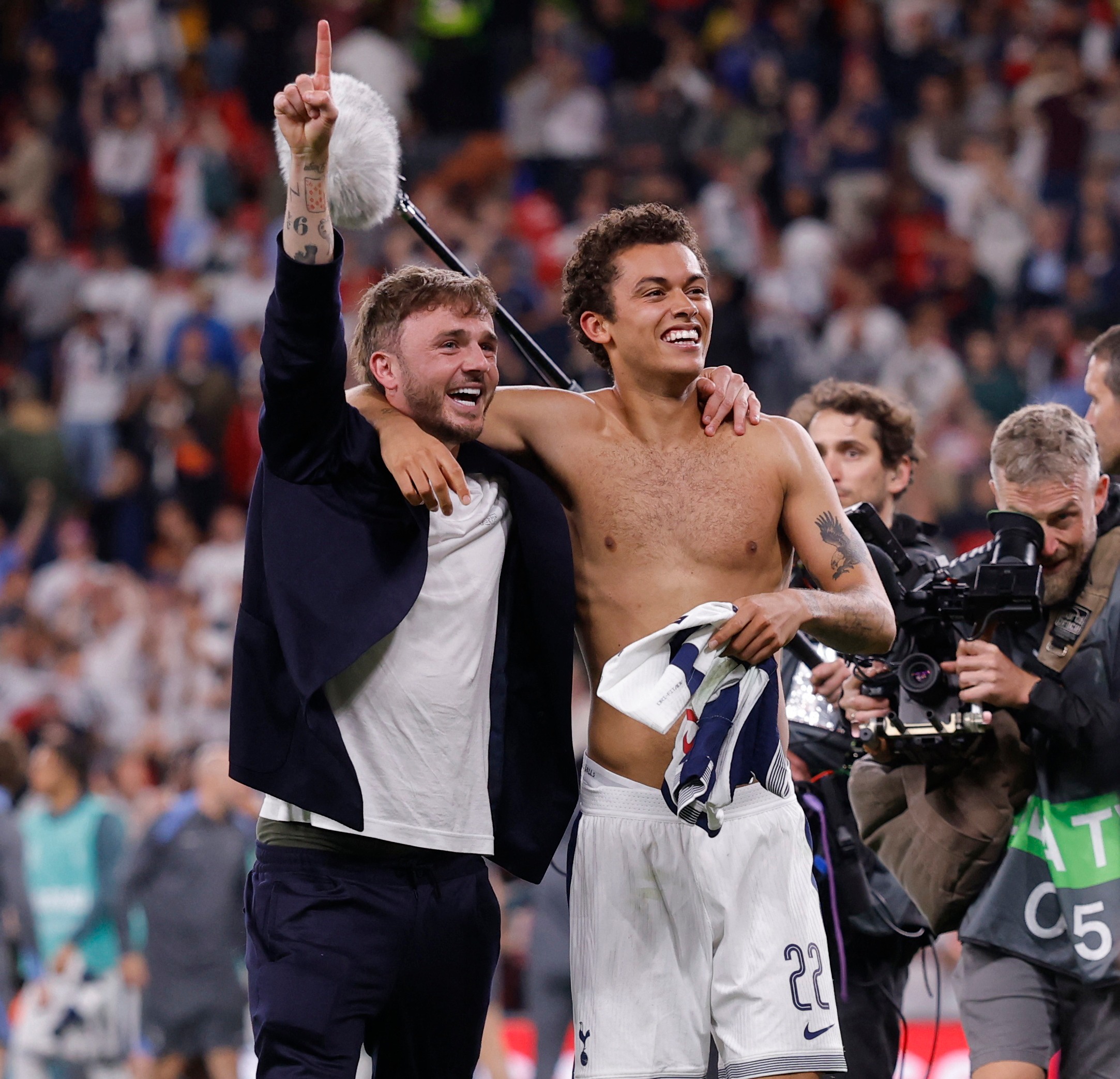 But the midfielder was not the only one who did it as injured pair Lucas Bergvall and Dejan Kulusevski also swapped tracksuits for a full kit for the trophy celebrations.