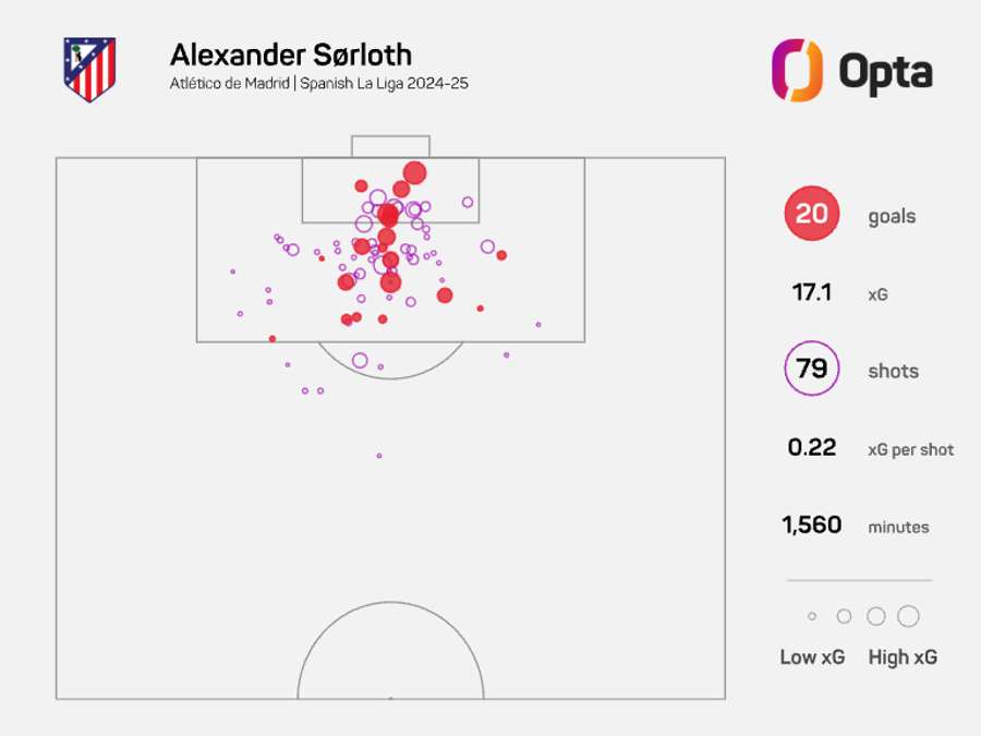 A sequence of neat passes culminated in Alvarez finding De Paul, who played a ball for Sorloth across the face of goal, allowing the Norwegian to pick his spot and net his 18th league goal of the campaign.