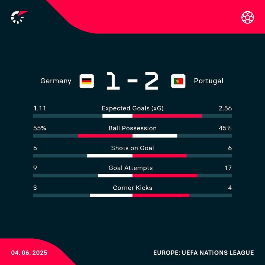 The hosts continued to provide a threat as the first half progressed, but Costa stood firm in the Portugal goal, denying Nick Woltemade and Goretzka in quick succession with a pair of superb saves.