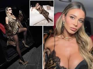 Ex-Premier League star's wife wows in leopard-print lingerie dress at runway show