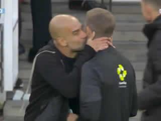 PEP GUARDIOLA bizarrely KISSED fourth official Craig Pawson during Manchester City's game with Arsenal.
