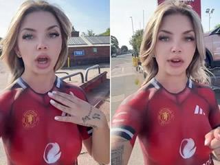 Glamorous Man Utd fan 'not allowed into Old Trafford' after rocking up in bodypaint