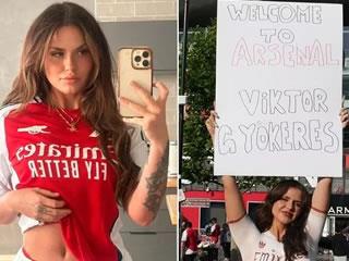 Arabella Mia left little to the imagination as 'Arsenal's biggest female fan' had a sultry message for new striker Viktor Gyokeres.