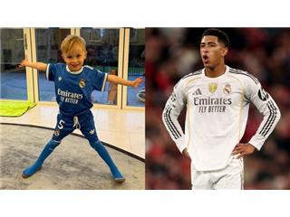 Jude Bellingham's newest fan! James Maddison dresses son up in close friend's Real Madrid kit with 'wise choice' message