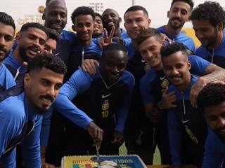 7M - Ronaldo and Al-Nassr teammates surprise Sadio Mane with celebratory cake following Afcon glory