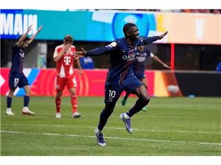 PSG's Ousmane Dembele celebrates after scoring his team's second goal during the Club World Cup game against Bayern Munich