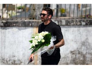 Jota Silva holds flowers as he arrives at the Chapel of the Resurrection