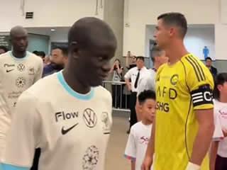 N'GOLO KANTE'S casual reaction to Cristiano Ronaldo left fans in stitches after a hilarious moment was caught on camera.