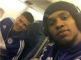 Kenedy looked in good spirits as he squeezed into Willian’s selfie during Chelsea’s flight up north for their Premier League clash with Manchester United on Monday night.