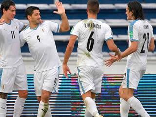 Uruguay's Edinson Cavani scored early and fellow striker Luis Suarez converted a second-half penalty, his fourth in three games for his country, as they beat Colombia 3-0 in Friday's CONMEBOL World Cup qualifier.