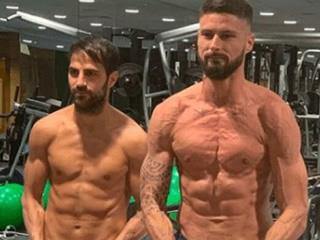 CHELSEA stars Cesc Fabregas and Olivier Giroud show off their ridiculous six-packs in this vein-busting gym photo.