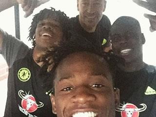 Michy Batshuayi was all smiles with Chelsea trio Loic Remy, John Terry and Kurt Zouma on Monday as the Blues continue their pre-season training in USA.