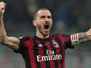 AC Milan's Leonardo Bonucci celebrates victory over Inter