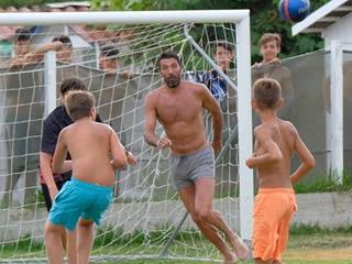The Juventus 'keeper was spotted playing football with some locals at the seaside town of Matina di Massa, near Pisa.