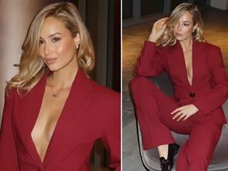 Ex-Premier League Wag Viktoria Varga Flashes No-Bra Style in Red Suit