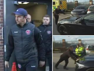 Incredible footage shows the moment Barton tried to speed out of the Oakwell Stadium car park before police rushed to prevent him from driving away.