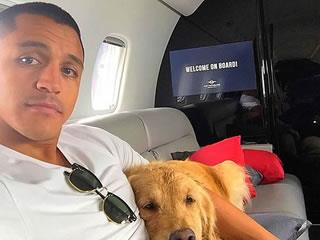 Alexis Sanchez jets back to the UK with his dogs